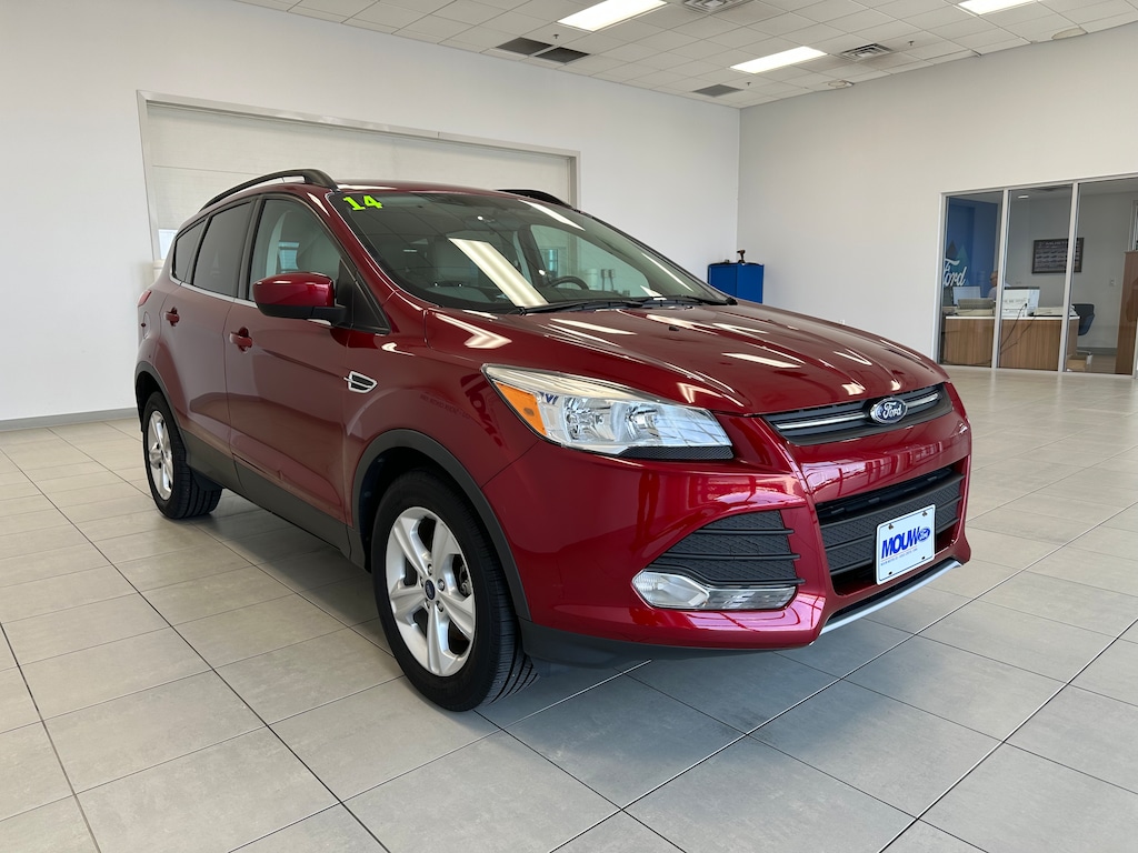 Mouw Motor is proud to present this 2014 Ford Escape SE. Ruby Red AWD 6-Speed Automatic EcoBoost 1.6L I4 GTDi DOHC Turbocharged VCT Local trade-in, AWD, Black Roof Side Rails, Dual Illuminated Visors, Dual Zone Electronic Automatic Temperature Control, Equipment Group 201A, Exterior Parking Camera Rear, Fully automatic headlights, Global One-Touch Up/Down Windows, Heated Leather-Trimmed Buckets w/60/40 Rear Seat, Heated Power Side Mirrors, Leather Comfort Package, Leather Steering Wheel & Shift Knob, Perimeter Alarm, Power Converter 110V Outlet, Power driver seat, Radio: Media Hub w/SYNC w/MyFord Touch, Remote keyless entry, Reverse Sensing System, SE Convenience Package, SYNC w/MyFord Touch & SYNC Services, Wheels: 17" Alloy Sparkle Silver Painted Aluminum.
