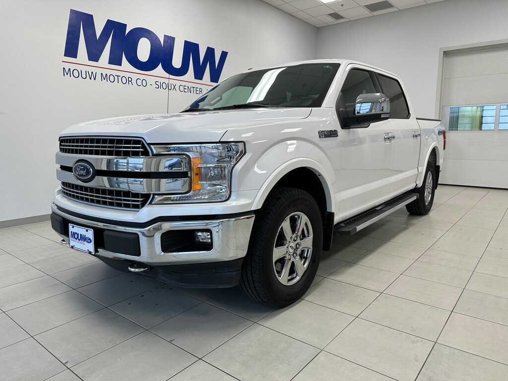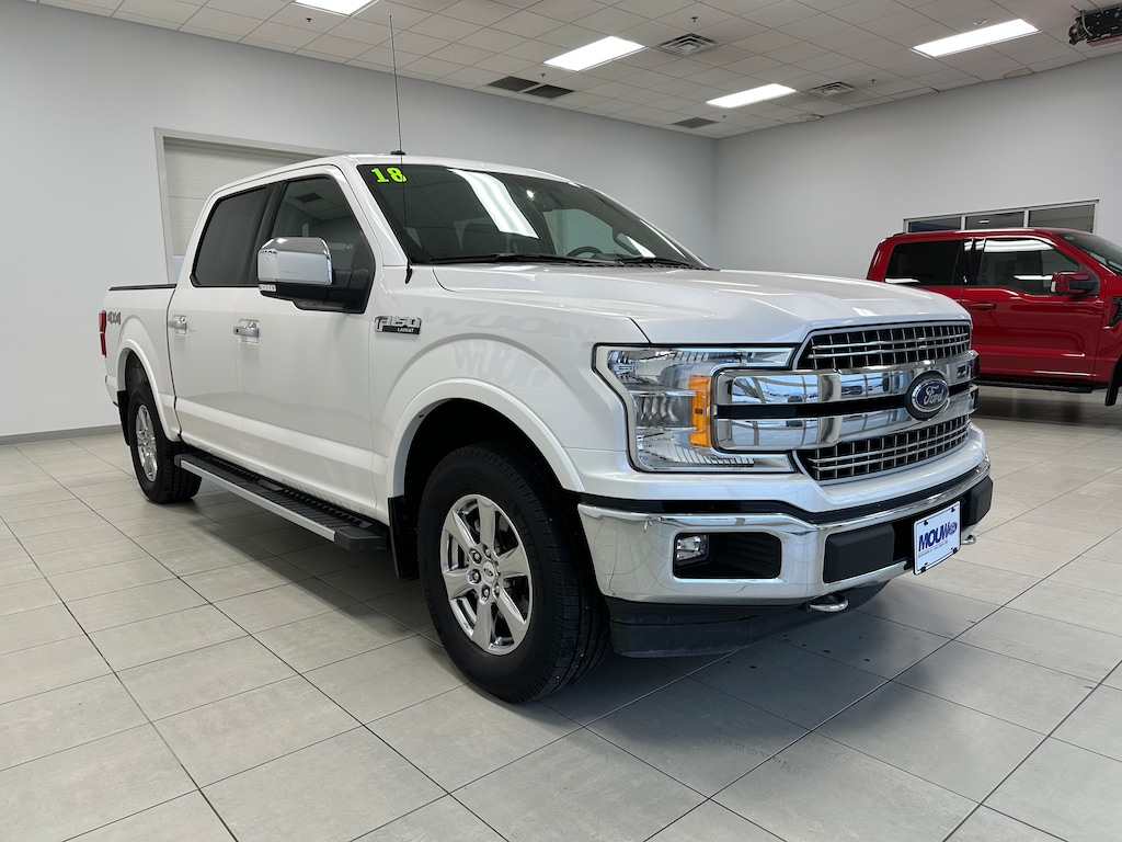 Mouw Motor is proud to present this 2018 Ford F-150 Lariat. White Platinum 4WD 10-Speed Automatic 3.5L V6 EcoBoost 4WD, 110V/400W Outlet, AppLink/Apple CarPlay and Android Auto, Automatic temperature control, BLIS Blind Spot Information System, Chrome 2-Bar Grille w/4 Minor Bars, Chrome Angular Step Bars, Chrome Door & Tailgate Handles w/Body-Color Bezel, Chrome Skull Caps on Exterior Mirrors, Class IV Trailer Hitch Receiver, Equipment Group 501A Mid, Extended Range 36 Gallon Fuel Tank, Heated door mirrors, Heated front seats, Higher-Capacity Radiator, Higher-Power Cooling Fans, Lariat Chrome Appearance Package, Leather-Trimmed Bucket Seats, LED Sideview Mirror Spotlights, Memory seat, Navigation System, Power driver seat, Power Glass Sideview Mirr w/Body-Color Skull Caps, Pro Trailer Backup Assist, Radio: Single-CD/SiriusXM w/7 Speakers, Remote Start System w/Remote Tailgate Release, Reverse Sensing System, Single-Tip Chrome Exhaust, SYNC 3, Tailgate Step w/Tailgate Lift Assist, Trailer Tow Package, Universal Garage Door Opener, Upgraded Front Stabilizer Bar, Voice-Activated Touchscreen Navigation System, Wheels: 18" Chrome-Like PVD.