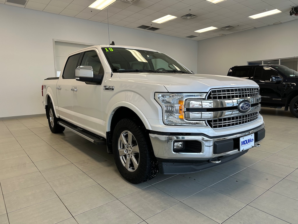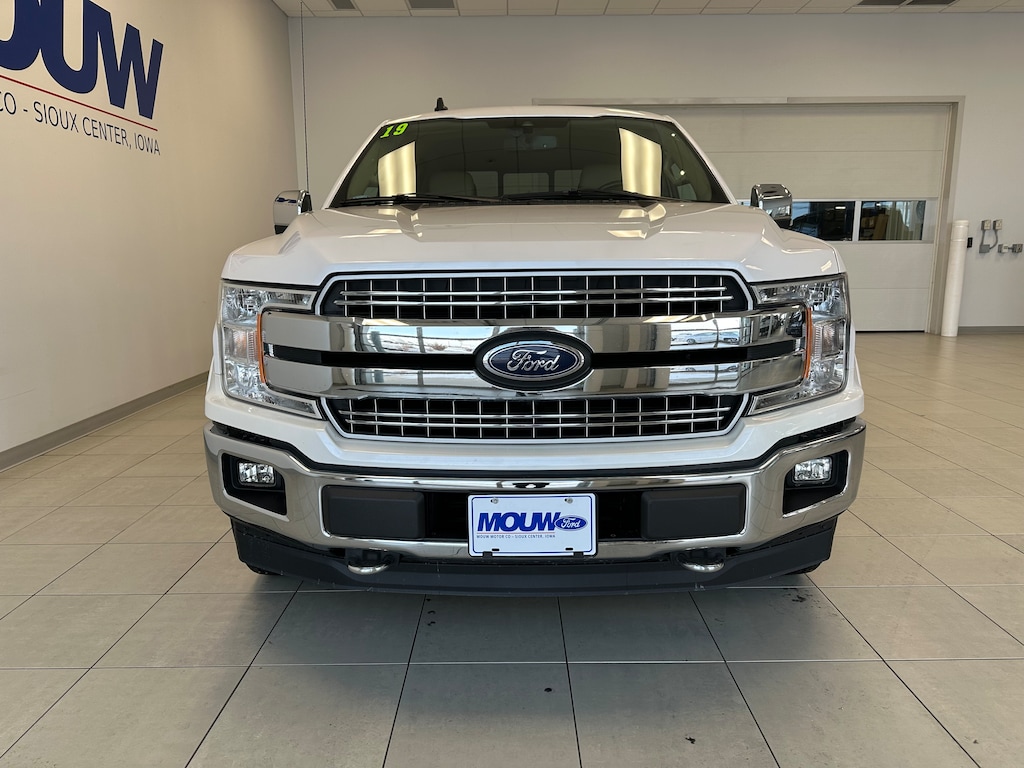 Mouw Motor is proud to present this 2019 Ford F-150 Lariat. White Platinum Clearcoat Metallic 4WD 10-Speed Automatic 3.5L V6 EcoBoost New Tires, Local Trade-in, 4WD, 110V/400W Outlet, 4x4 FX4 Off-Road Bodyside Decal, AppLink/Apple CarPlay and Android Auto, Auto High-beam Headlights, Automatic temperature control, BLIS Blind Spot Information System, Chrome 2-Bar Grille w/4 Minor Bars, Chrome Angular Step Bars, Chrome Door & Tailgate Handles w/Body-Color Bezel, Chrome Skull Caps on Exterior Mirrors, Class IV Trailer Hitch Receiver, Electronic Locking w/3.55 Axle Ratio, Engine Oil Cooler, Equipment Group 501A Mid, Extended Range 36 Gallon Fuel Tank, FX4 Off-Road Package, Heated door mirrors, Heated front seats, Hill Descent Control, Integrated Trailer Brake Controller, Lariat Chrome Appearance Package, Leather-Trimmed Bucket Seats, LED Sideview Mirror Spotlights, Max Trailer Tow Package, Memory seat, Off-Road Tuned Front Shock Absorbers, Power driver seat, Power Glass Sideview Mirr w/Body-Color Skull Caps, Power passenger seat, Pro Trailer Backup Assist, Radio: AM/FM Stereo w/6 Speakers, Remote Start System w/Remote Tailgate Release, Reverse Sensing System, Single-Tip Chrome Exhaust, SiriusXM Radio, SYNC 3, Tailgate Step w/Tailgate Lift Assist, Tray Style Floor Liner, Universal Garage Door Opener, Upgraded Front Stabilizer Bar, Ventilated front seats, Wheels: 18" Chrome-Like PVD.