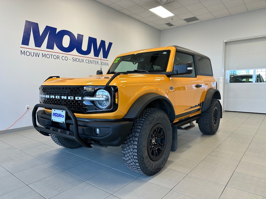 Mouw Motor is proud to present this 2022 Ford Bronco Wildtrak. Cyber Orange Metallic Tricoat 4WD 10-Speed Automatic 2.7L EcoBoost V6 12" LCD Capacitive Touchscreen w/Swipe Capability, 2 Smart Charging USB Ports In Dashboard, 360-Degree Camera, 4.7 Final Drive Ratio, Adaptive Cruise Control, Additional Sound Deadening, Auto High-beam Headlights, Convertible HardTop, Dual-Zone Electronic Automatic Temperature Control, Equipment Group 354A Lux Package, Evasive Steering Assist, Exterior Parking Camera Rear, Front Parking Sensors, Heated door mirrors, Heated front seats, Heated Steering Wheel, High Clearance Fender Flares, High Clearance Suspension, Information on Demand Panel, Paint Protection Film (DISC), Position-Sensitive Bilstein Shock Absorbers, Power door mirrors, Radio: B&O Sound System by Bang & Olufsen, Remote keyless entry, Sasquatch Package, Sideview Mirrors, Telescoping steering wheel, Towing Capability, Universal Garage Door Opener, Wheels: 17" Black High Gloss-Painted Aluminum, Wildtrak Bodyside Graphic, Wireless Charging Pad.
