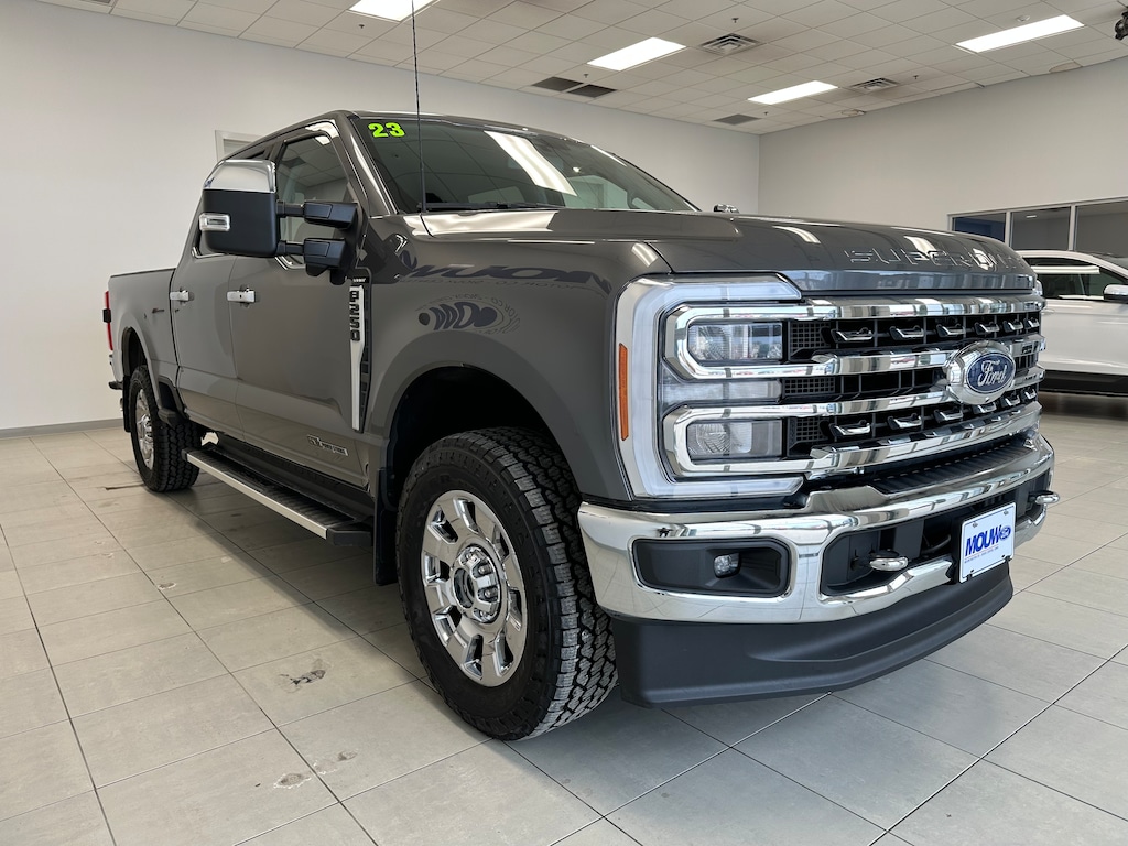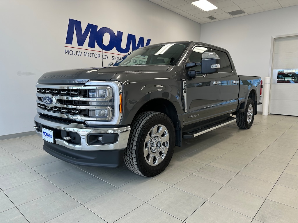 Mouw Motor is proud to present this 2023 Ford F-250SD Lariat. Carbonized Gray Metallic 4WD 10-Speed Automatic Power Stroke 6.7L V8 DI 32V OHV Turbodiesel One-owner, Local trade-in, 4WD, 5th Wheel/Gooseneck Hitch Prep Package, 6" Angular Bright Anodized Step Bars, All-Weather Floor Mats, AM/FM radio: SiriusXM with 360L, Auto High-beam Headlights, Automatic temperature control, Chrome Door Handles, Chrome Exhaust Tip, Chrome Package, Electronic-Locking w/3.31 Axle Ratio, F-250 >10K GVWR Package, Flow-Through Console, Front Leather-Trimmed 40/Console/40 Seats, Front Splash Guards/Mud Flaps (Pre-Installed), Garage door transmitter, Gooseneck Hitch Kit (Pre-Installed), Heated door mirrors, Heated front seats, Heated steering wheel, Memory seat, Navigation system: Connected Navigation, Order Code 608A, Power driver seat, Radio: B&O Sound System by Bang & Olufsen, Rear Splash Guards/Mud Flaps (Pre-Installed), Remote keyless entry, SiriusXM Radio w/360L, SYNC 4 w/Enhanced Voice Recognition, Unique Chrome Mirror Caps, Ventilated front seats, Wheels: 20" Chrome PVD Aluminum.
