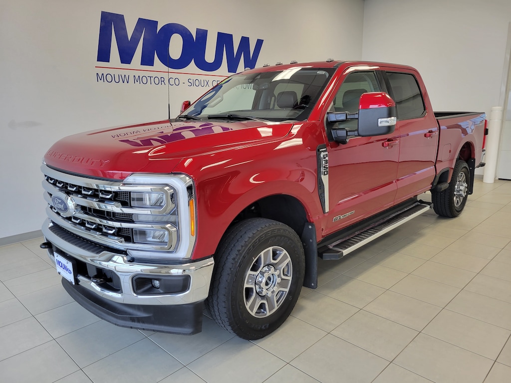 Mouw Motor is proud to present this 2023 Ford F-350SD Lariat. Rapid Red Metallic Tinted Clearcoat 4WD 10-Speed Automatic Power Stroke 6.7L V8 DI 32V OHV Turbodiesel One-owner, Local trade-in, 4WD, 5th Wheel/Gooseneck Hitch Prep Package, 6" Angular Bright Anodized Step Bars, Auto High-beam Headlights, Automatic temperature control, Electronic-Locking w/3.31 Axle Ratio, Front Leather-Trimmed 40/20/40 Split Bench Seat, Garage door transmitter, Gooseneck Hitch Kit (Pre-Installed), Heated door mirrors, Heated front seats, Heated steering wheel, Leather steering wheel, Memory seat, Navigation system: Connected Navigation, Order Code 618A, Power driver seat, Radio: B&O Sound System by Bang & Olufsen, SiriusXM Radio w/360L, SYNC 4 w/Enhanced Voice Recognition, Wheels: 18" Bright Machined & Carbonized Gray Alum.