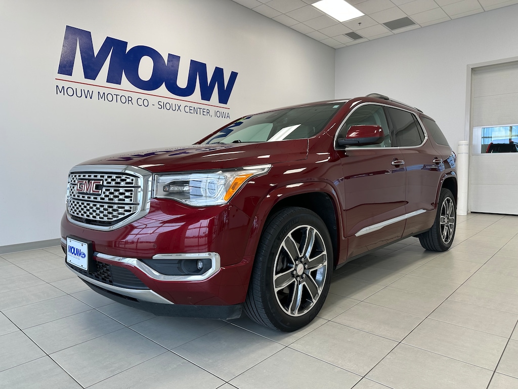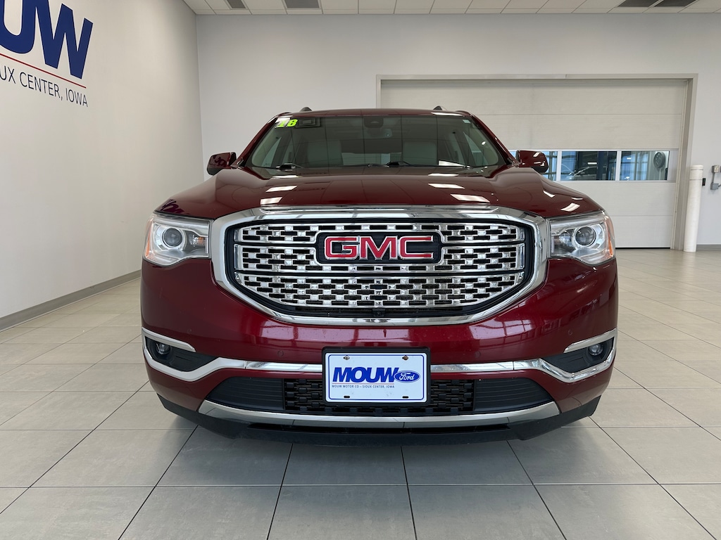 Mouw Motor is proud to present this 2018 GMC Acadia Denali. Crimson Red Tintcoat AWD 6-Speed Automatic 3.6L V6 SIDI DOHC VVT New Tires, AWD, Cocoa/ Shale Leather, 3rd row seats: split-bench, 6-Passenger (2-2-2 Seating Configuration), Apple CarPlay/Android Auto, Auto High-beam Headlights, Automatic temperature control, Dual SkyScape 2-Panel Power Sunroof, Electronic Cruise Control w/Set & Resume Speed, Exterior Parking Camera Rear, Forward Automatic Braking, Front dual zone A/C, Front fog lights, Full Speed Adaptive Cruise Control w/Stop/Go, Garage door transmitter: HomeLink, Heated front seats, Heated rear seats, Heated steering wheel, Memory seat, Navigation System, Perforated Leather-Appointed Seat Trim, Power driver seat, Power Liftgate, Power passenger seat, Preferred Equipment Group 5SA, Premium audio system: GMC Infotainment System, Radio: AM/FM 8" Diagonal Color Touch Navigation, Rear Seat DVD Entertainment System, SiriusXM Satellite Radio, Surround Vision System, Technology Package, Ventilated front seats, Wheels: 20" x 8" Polished Aluminum (4).